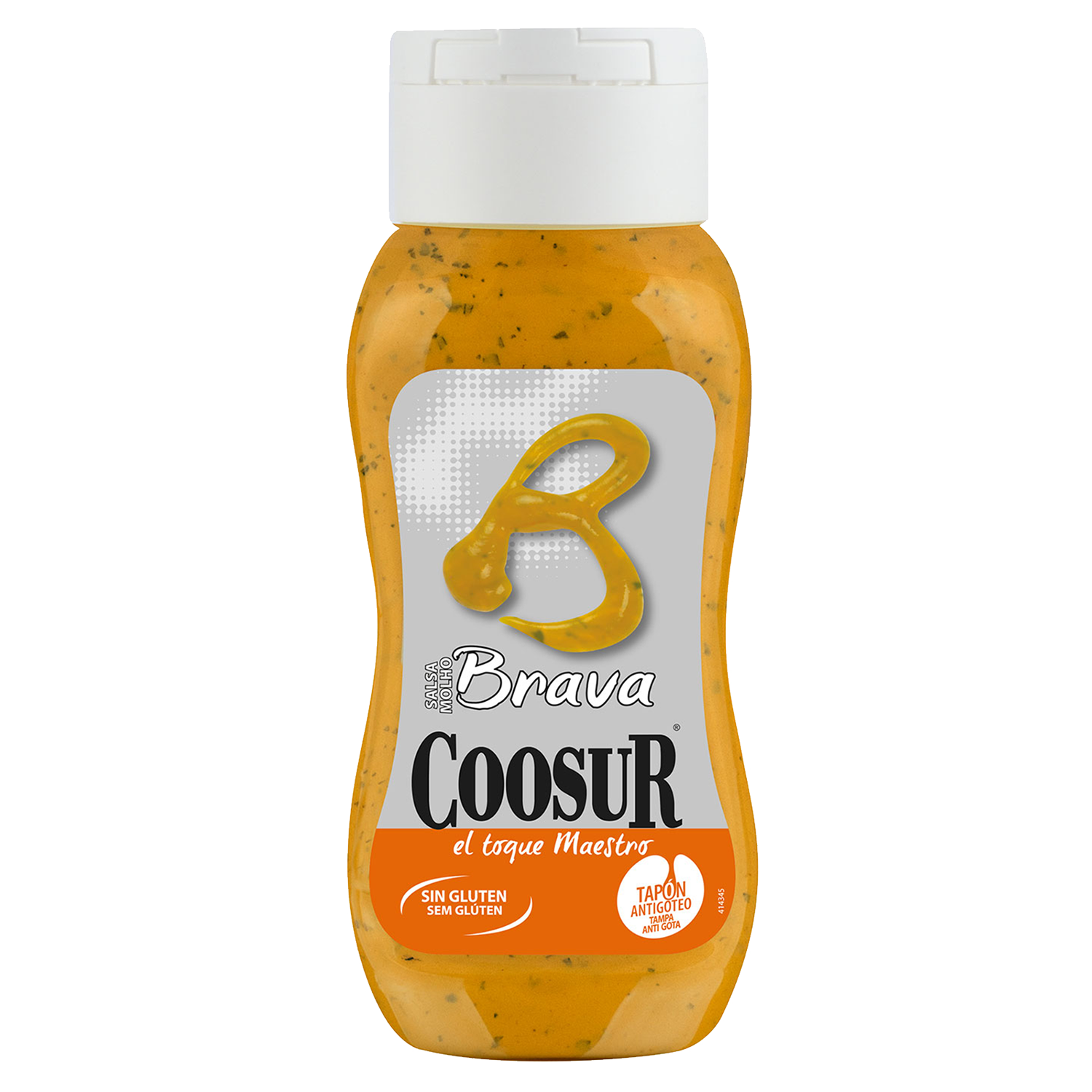 La Salsa Brava Coosur es la opción ideal para los amantes del picante que desean llevar sus platos al siguiente nivel. Presentada en un conveniente formato de 300 ml con tapón antigoteo, esta salsa brava combina ingredientes seleccionados para un sabor inigualable que realzará tus recetas favoritas.